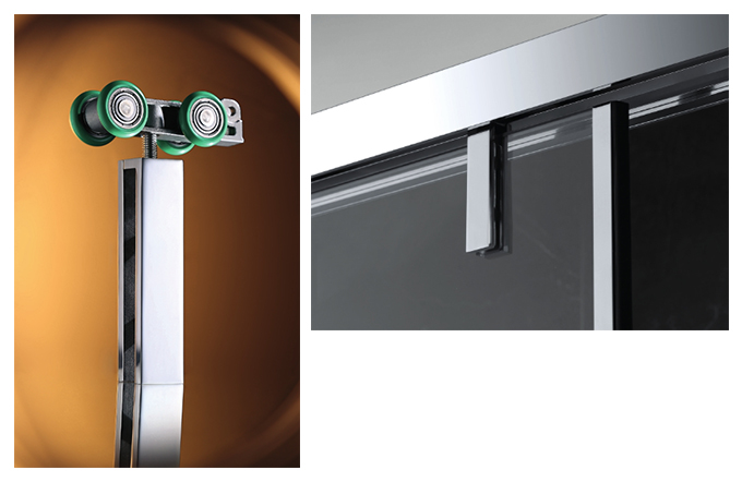 BEARING STRUCTURE极致简约吊夹Quiet and smooth shower, good soundinsulation, no outside shaking after closing the door. Real quiet shower space.应合当下淋浴设计风格,极简吊夹都市精英-族的淋浴风向。